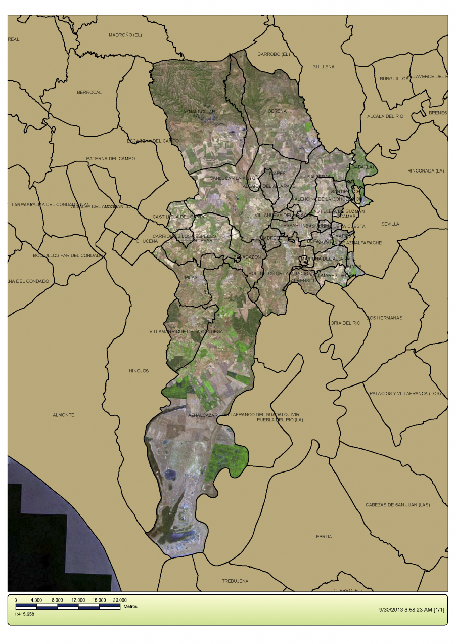 Elaboración de Cartografía de los 27 municipios que suministra el agua Aljarafesa.
