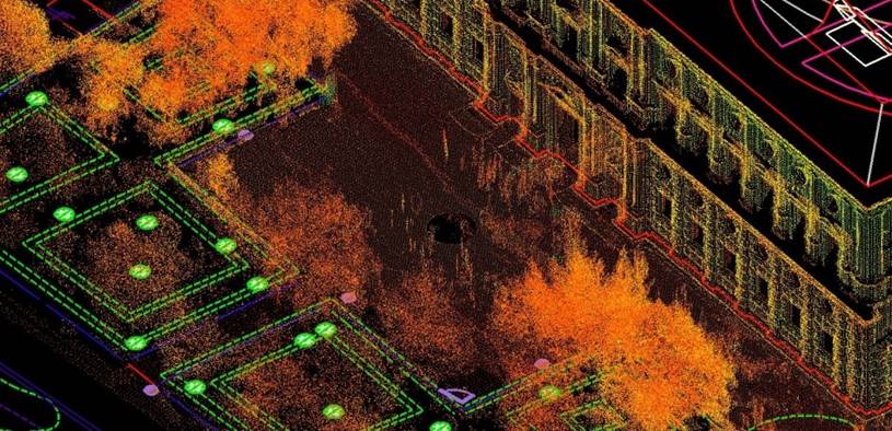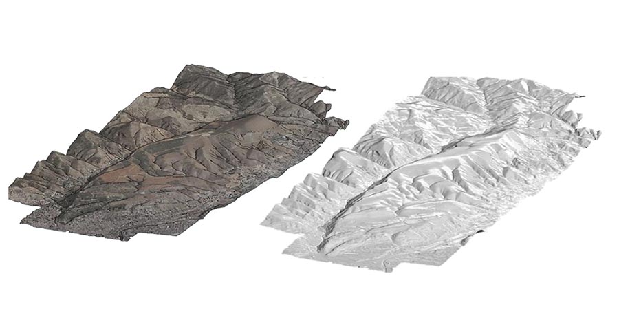 Junto al vuelo fotogramétrico de alta resolución se realizó un vuelo LiDAR para dar un soporte topográfico de alta precisión no solo al área monumental sino también al entorno montañoso y cubierto de vegetación que la rodea y que, dada su resolución, se convierte en una herramienta inestimable para el estudio de la infraestructura hidráulica que alimenta al conjunto palatino.