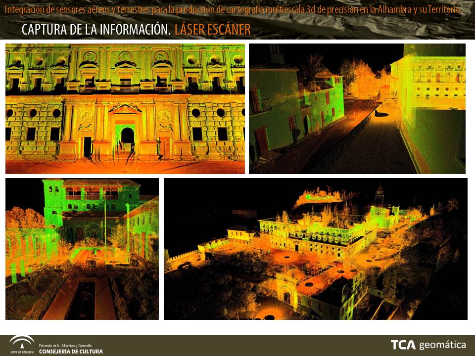 Se ha obtenido una nueva cartografía 3d, de precisión, y multiescala que cubre la totalidad del espacio que gestiona el Patronato de la Alhambra, unas ortoimágenes generadas a partir de los vuelos realizados y un protocolo de actuación topográfica que contiene las normas técnicas de captura y el modelo de datos que garantiza la integridad del Sistema.