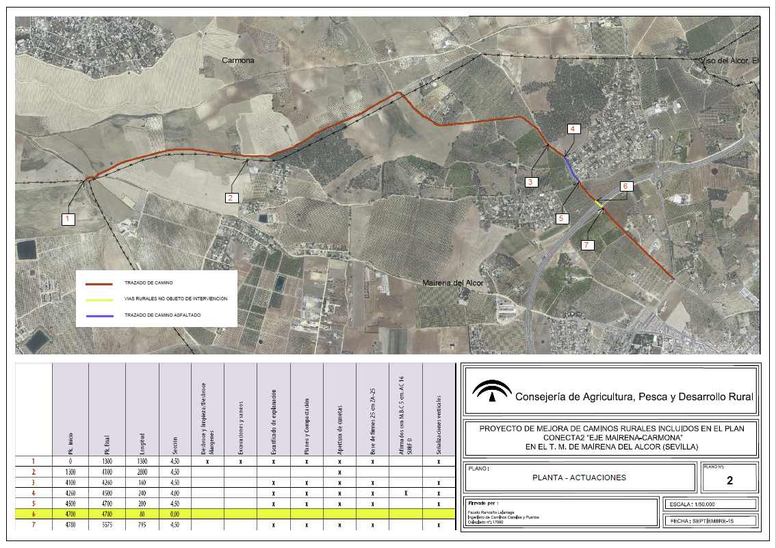 Redacción de Proyectos de Mejora de Caminos en los TM de Carmona, Viso y Mairena del Alcor. Proyecto Conecta2